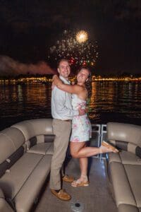 Disney fireworks proposal on a boat with professional low-light photography by Orlando-based proposal expert.