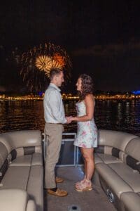 Disney fireworks surprise proposal on a private boat with low-light photography by expert Orlando photographer.