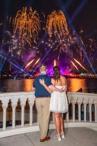 Celebrate your Disney proposal in style with a fireworks party at Epcot’s Italy Isola, captured by an expert Orlando proposal photographer.